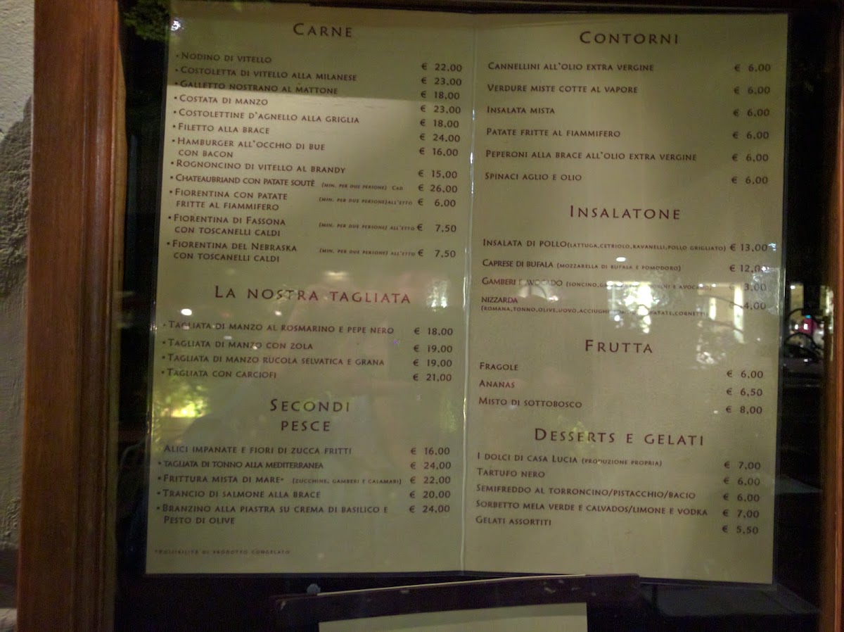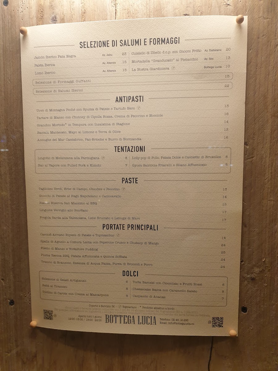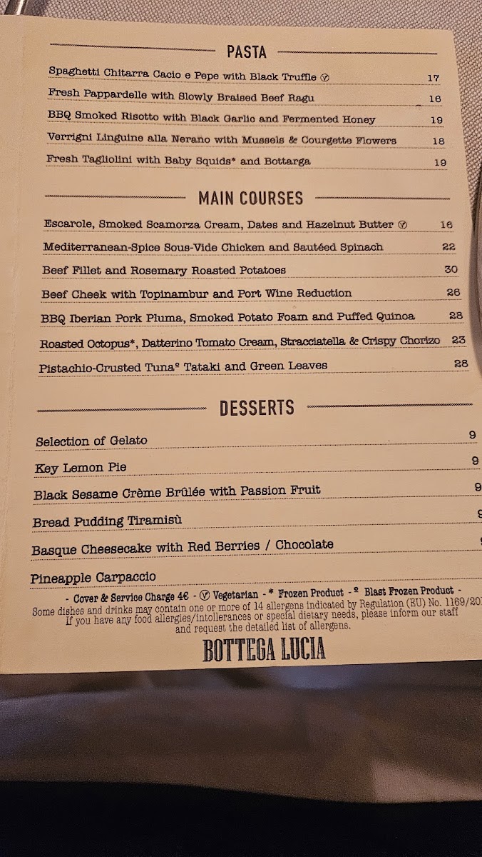 Bottega Lucia Menu
